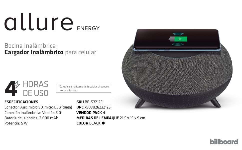 Altavoz Walmart Billboard Allure BT con cargador inalámbrico
