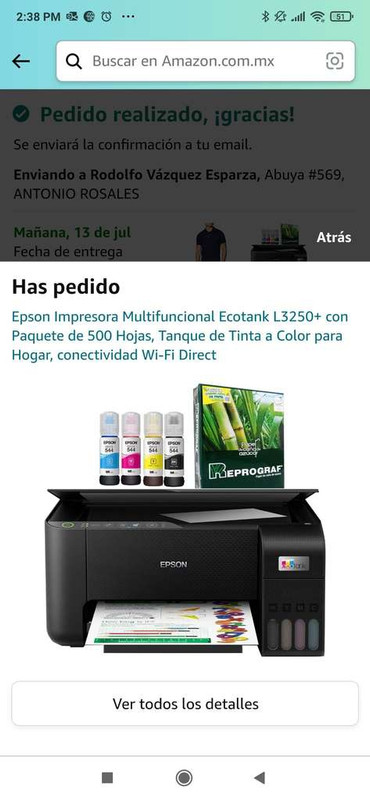 Amazon Prime Day Impresora Multifunción Epson L3250 Ink pack 500 hojas (Desde $3472 con promociones bancarias)