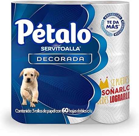 Pétalo Servitoalla Decorada, 1 pack con 3 Rollos a 60 hojas El fabricante nos proporciona este producto con empaques diferentes. Nos resulta imposible proporcionarte el producto con un empaque en particular. Al confirmar tu compra, recibirás el producto con uno de los empaques que se muestran en la imagen o en el título, en función de la disponibilidad. Muchas gracias por tu comprensión.