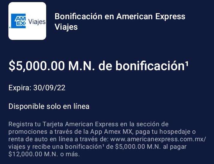 Bono de $5000 de American Express al pagar $12000 en Viajes American Express | usuarios seleccionados