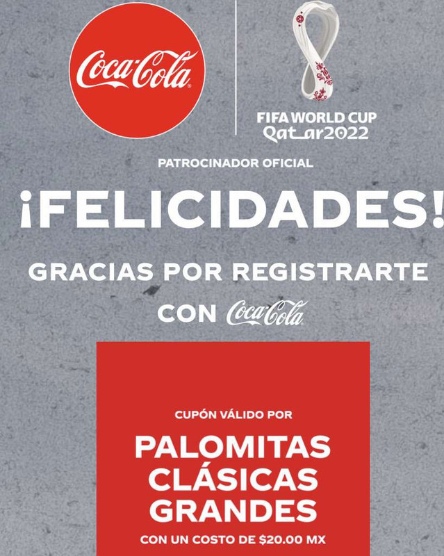 Cinemex x Coca Cola: Palomitas grandes Clásicas a $20 pesos al registrarte
