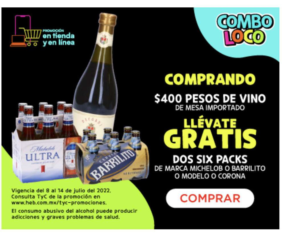HEB - compre $400 en vino de mesa importado y obtenga 2 paquetes de seis de michelob modelo barrilito o corona gratis