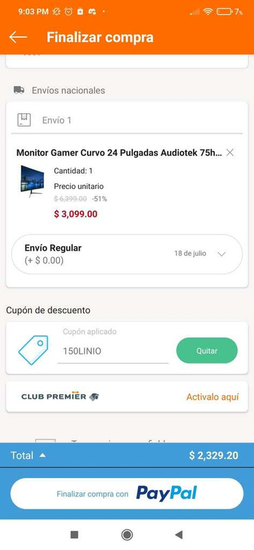 Linio: Monitor curvo 24 pulgadas | Pagando con PayPal + cupón