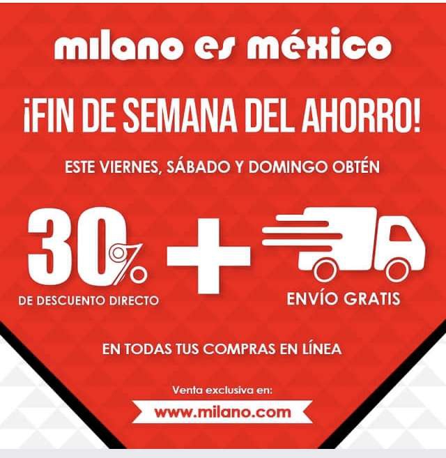 Milano online.- Todo con un 30% de descuento adicional y envío gratis.