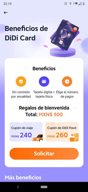 Tarjeta Didi $500 de bienvenida al procesar tarjeta de crédito
