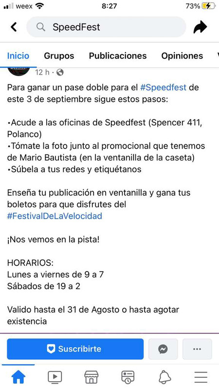 Enseña tu publicación en ventanilla y gana tus boletos para que disfrutes del #FestivalDeLaVelocidad