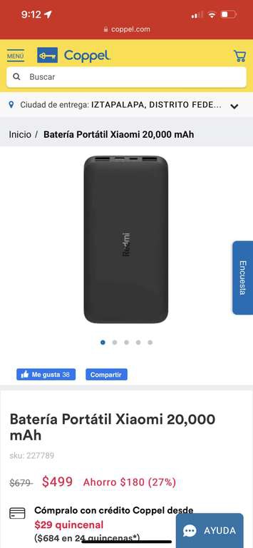 Coppel: Batería Portátil Xiaomi 20,000 mAh