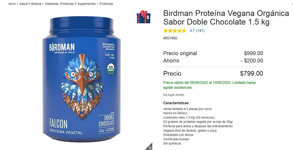 Costco Ir a la oferta Falcon Protein es una proteína orgánica vegetal, sinergia de 7 diferentes fuentes de proteína con una mezcla digestiva de probióticos y enzimas encargados de asistirte en la digestión.