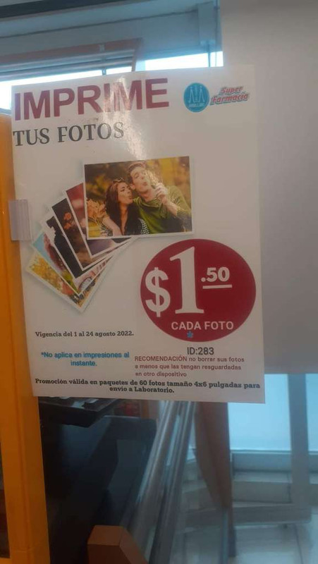 Farmacias Guadalajara A partir de 60 fotos salen en -.50 cada una, precio normal $6, aplica solo en el tamaño indicado en la imagen