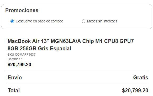 MacStore, MacBook Air M1 8GB 256GB Gris Espacial + 15% de bonificación con Tarjeta Digital Banorte