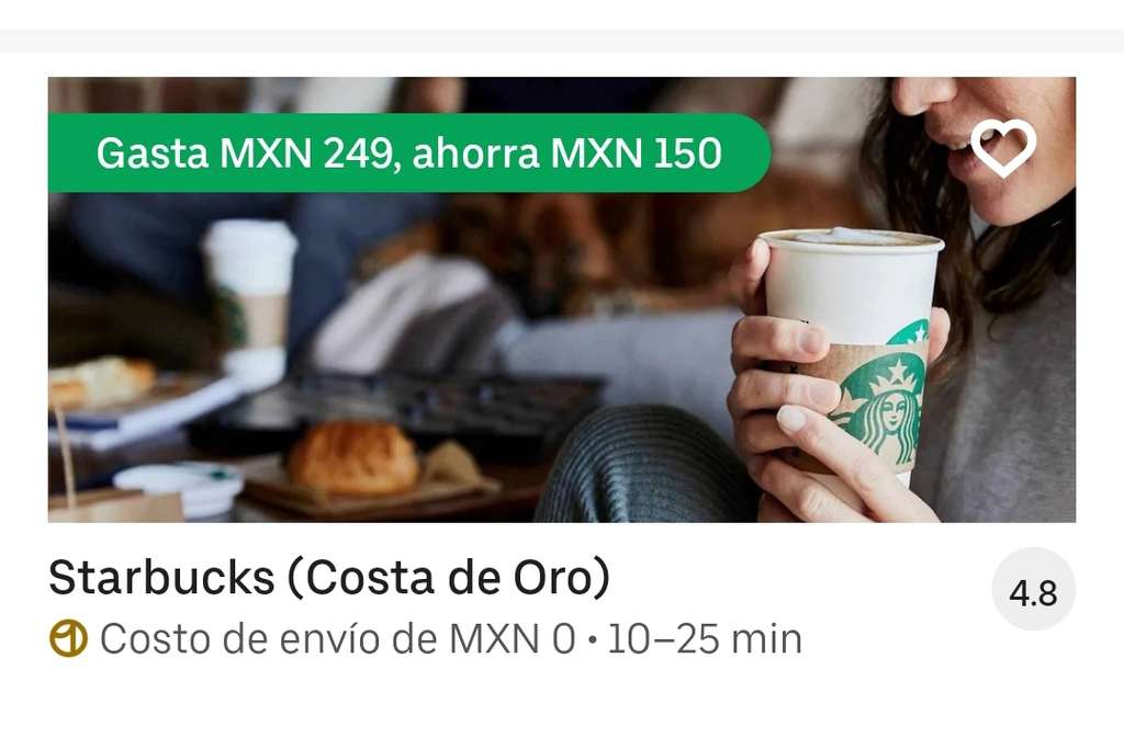 Uber eats: $150 de descuento al comprar $249 en Starbucks