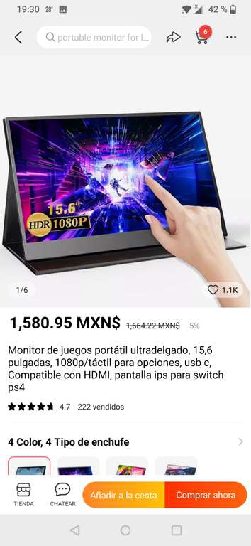 AliExpress: pantalla LCD de 13" conexión USB c