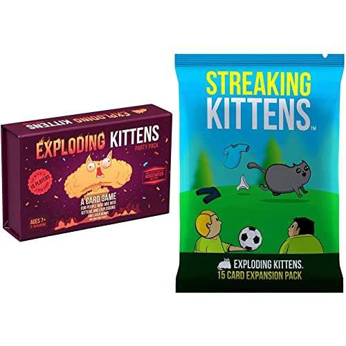 Amazon Exploding Kittens - Party Juego de Cartas Tipo Ruleta Rusa + Set de expansión, Juego de Cartas Tipo Ruleta Rusa