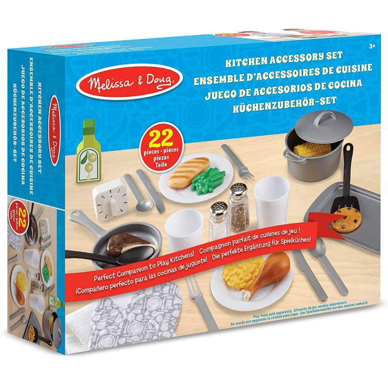 Amazon: Melissa & Doug Set de Accesorios de Cocina, Construcción Resistente, Complemento Para Cocinas de Juguete (22 Piezas)