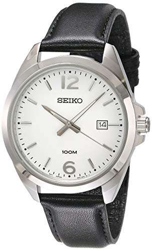 Amazon Seiko Reloj analógico para hombre de 41 mm con correa de piel de becerro negro estándar