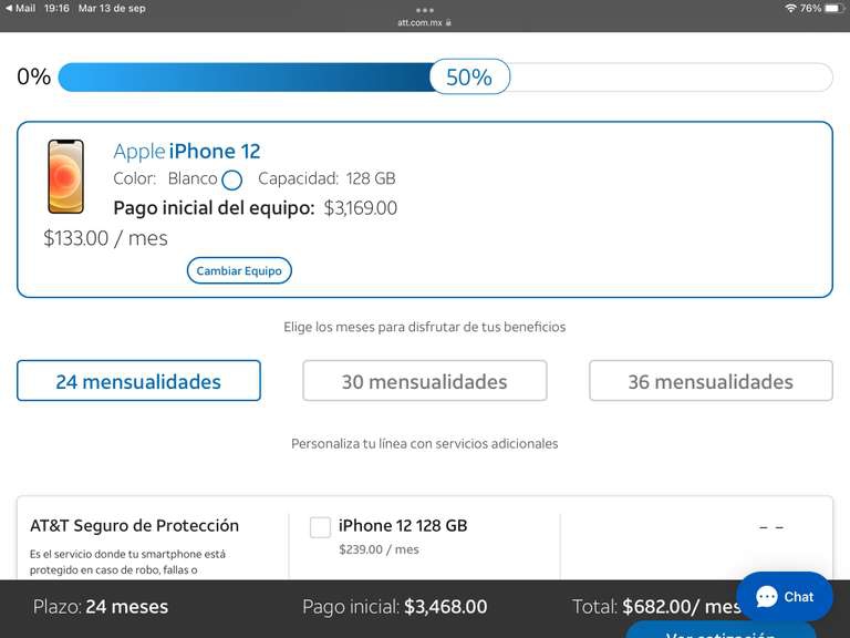 AT&T: iPhone 12 128Gb | Precio con plan ármalo 11 24 meses ($549 p/mes)