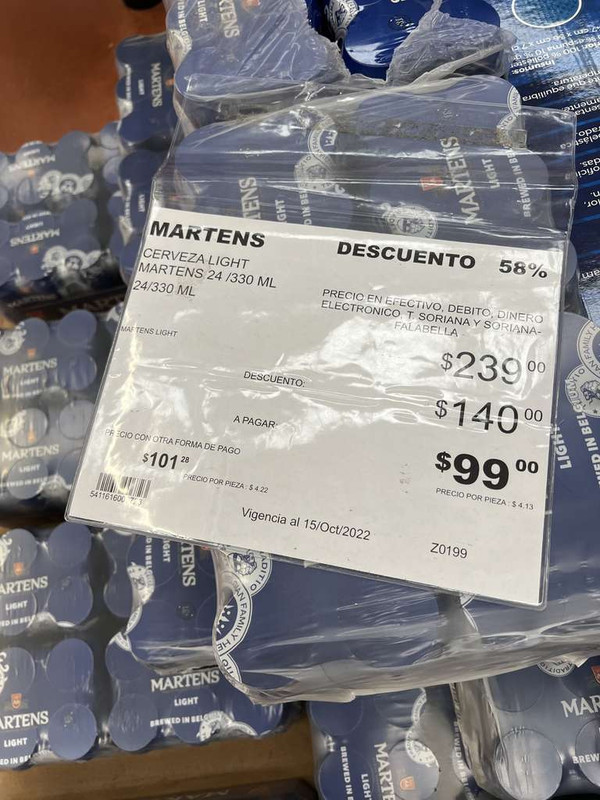 City Club: Charola 24 piezas de cerveza martens ligth