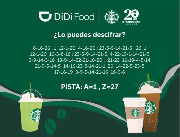 DiDi Food 99 por ciento de descuento en Starbucks por 5 minutos