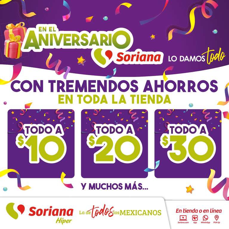 Folleto de Aniversario Soriana: Productos de $10, $20, $30 y más