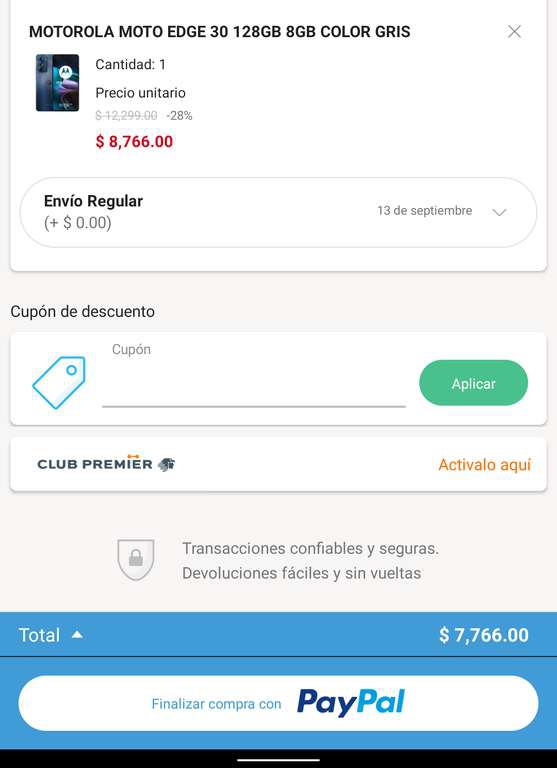 Linio - Celular Moto Edge 30 - pagando con Paypal