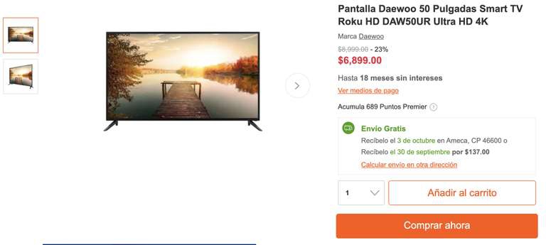 Linio: Daewoo Pantalla 50 pulgadas Smart TV Roku HD DAW50UR Ultra HD 4K