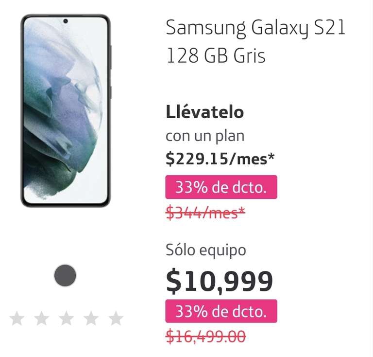 Movistar: Samsung Galaxy S21 128GB ($10,999), S21 Plus 128GB ($13,999)