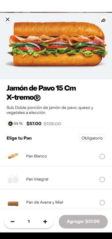 Rappi Subway Jamón de pavo X-tremo 15cm