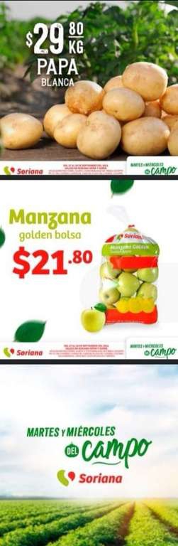 Soriana: Golden Apple bag $21.80 kg • Papa Blanca $29.80 kg