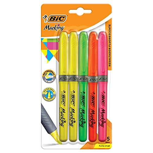 Amazon: BIC, Marcatextos con Grip, Subraya Todo 5 piezas | Envío gratis con Prime