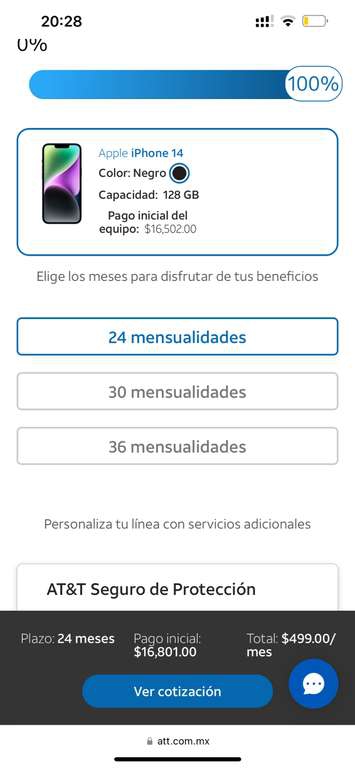 AT&T: iPhone 14 128gb con plan AT&T plan ármalo 9