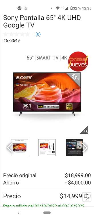 Costco Sony Pantalla 65" 4K UHD Google TV
