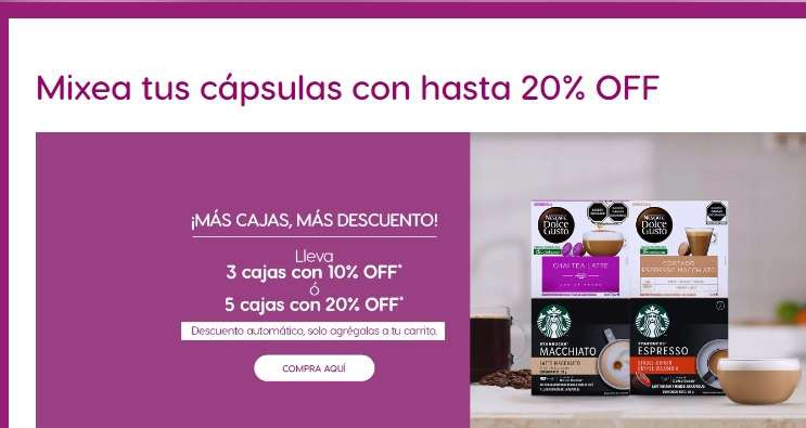 Dolce Gusto: Descuentos del 10,15 y 20% a partir de 3 cajas + envíos gratis en compras de $600 o más