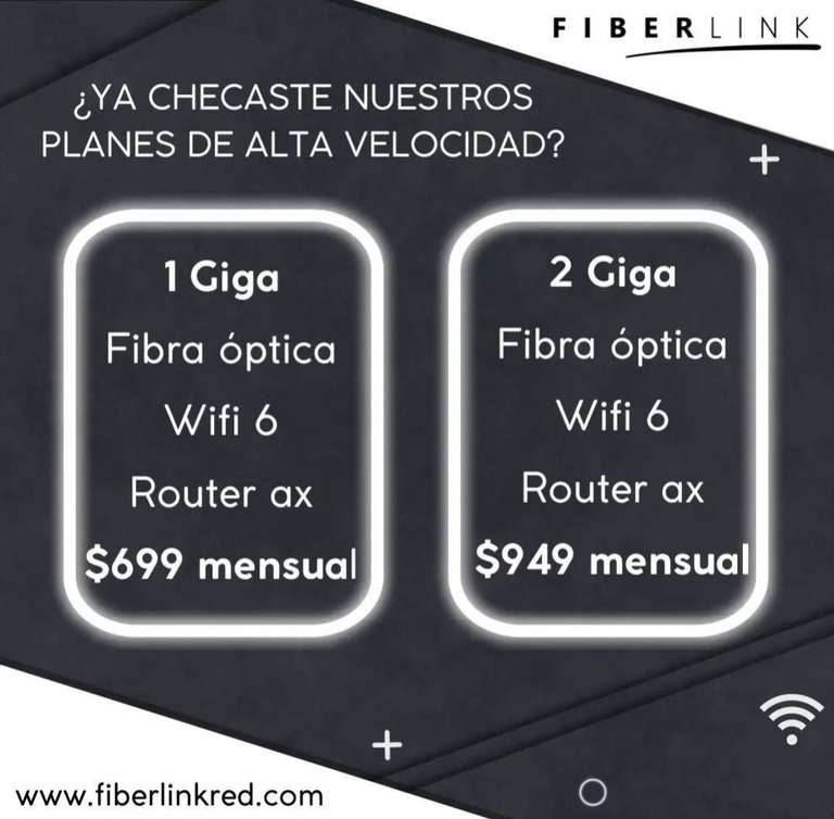 Fiber link: 1 Gbps de velocidad por $699, 2 Gbps $949 con router wifi 6 (solo Guadalajara y Zapopan )