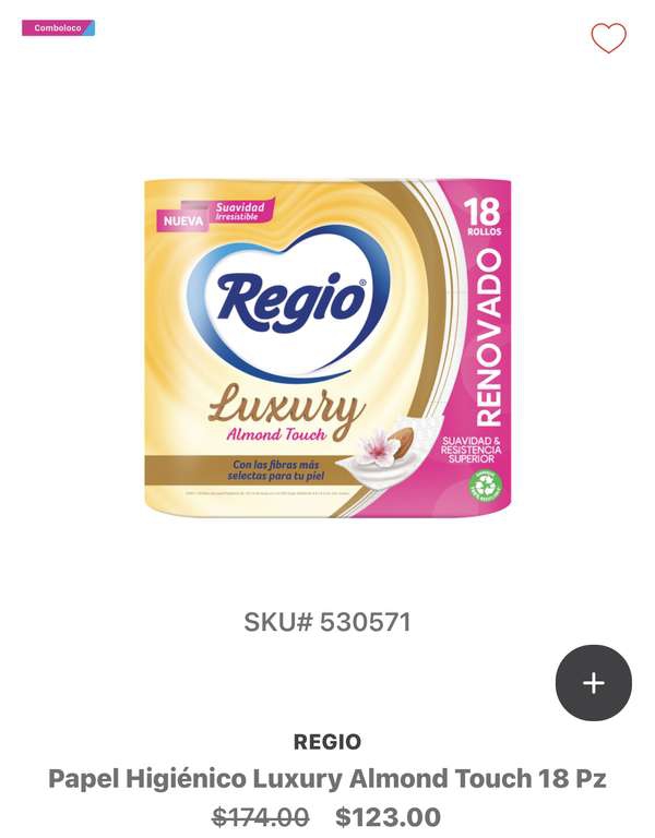 H-E-B: Regio Luxury Almond Touch 18 rollos comprando 3x2