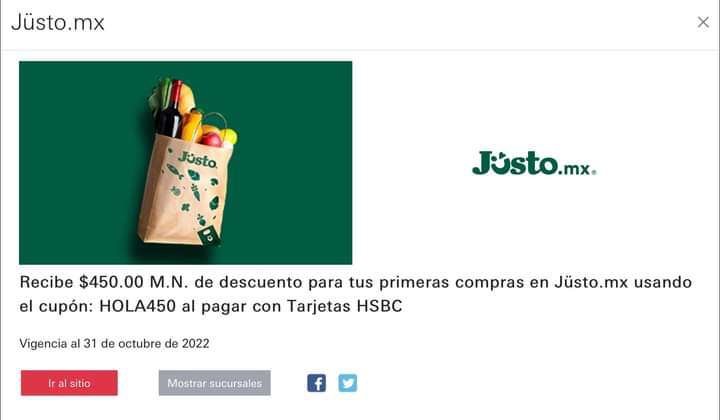 HSBC Recibe $450.00 M.N. de descuento en tus primeras compras en Jüsto .mx