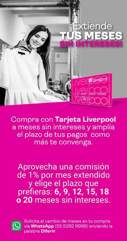 Liverpool: Extensión de meses sin intereses (1% de comisión por mes extendida, hasta 20 MSI, compras superiores a $1000)
