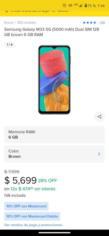 Mercado Libre: Celular Samsung Galaxy M33 5g Dual sim Brown | Pagando con MasterCard