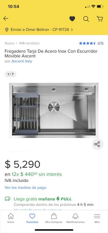 Mercado Libre Fregadero tarja marca Axcent / Descuento con HSBC