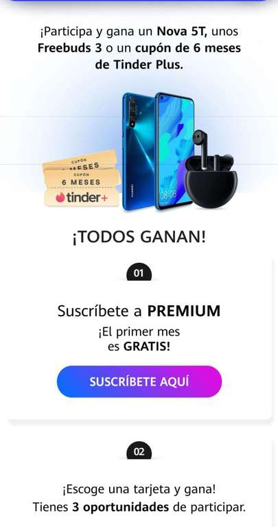 Premios exclusivos (desde 6 meses de Tinder Plus hasta Freebuds o Nova 5T) al suscribirte a Huawei Music (1er mes gratis)