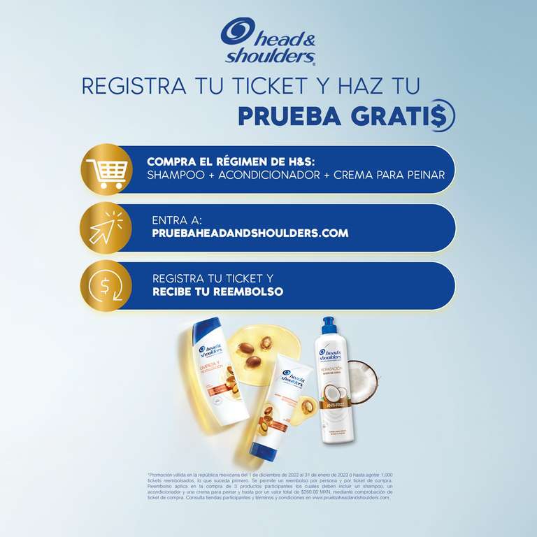 Prueba Gratis de Head & Shoulders: Registra tu Ticket de Compra y Recibe Reembolso (1/12)