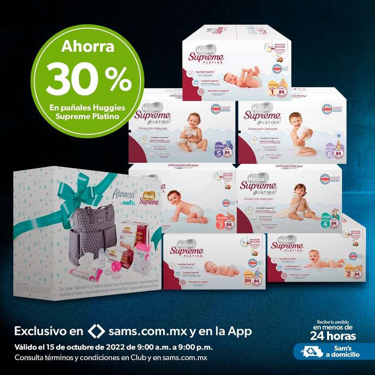 Sam's Club: 30% en Pañales Huggies Supreme Platino (todas las etapas_Solo HOY)