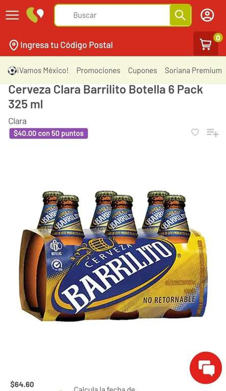 Soriana: Clara Barrilito Botella de Cerveza 6 Pack 325 ml a 40 pesos con 50 puntos