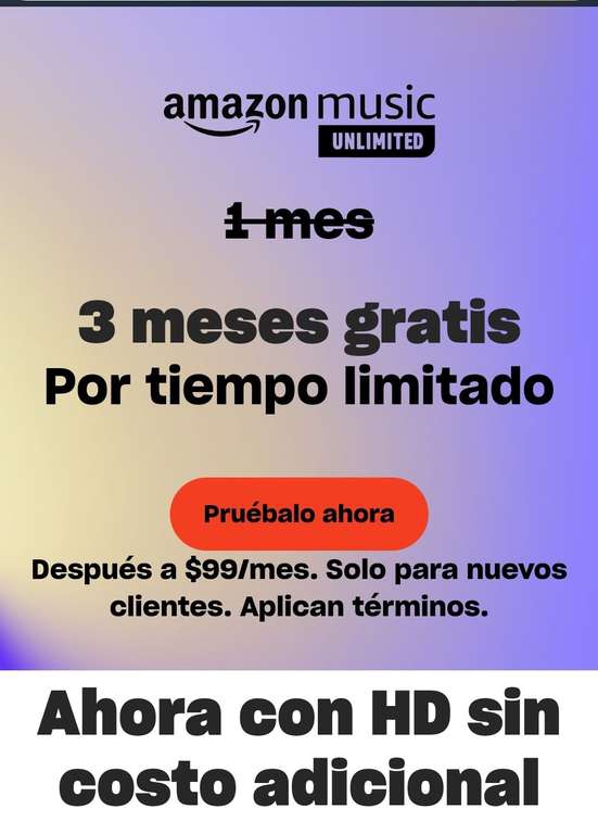 3 meses Gratis AMAZON MUSIC Ilimitado (por tiempo limitado) NUEVOS USUARIOS