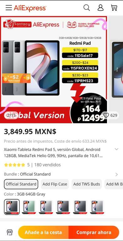 AliExpress: TABLET REDMI PAD 5 (versión global) 3 | 64 GB (usando cupones REDMI010 + 11Sdz18)