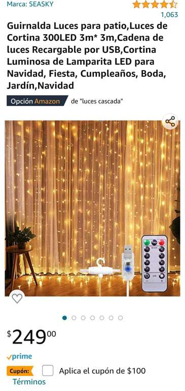Amazon - Luces de cortina 300LED 3m * 3m Luces de cadena recargables USB Cupón de $ 100