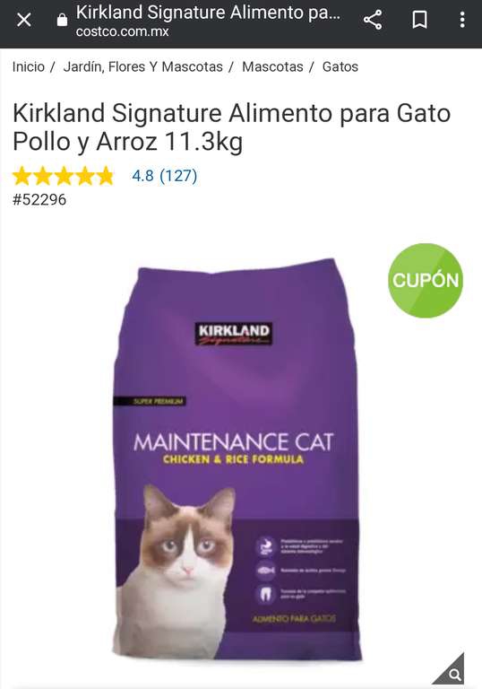 Costco Ir a la oferta> Alimento balanceado para gato, pollo y arroz.