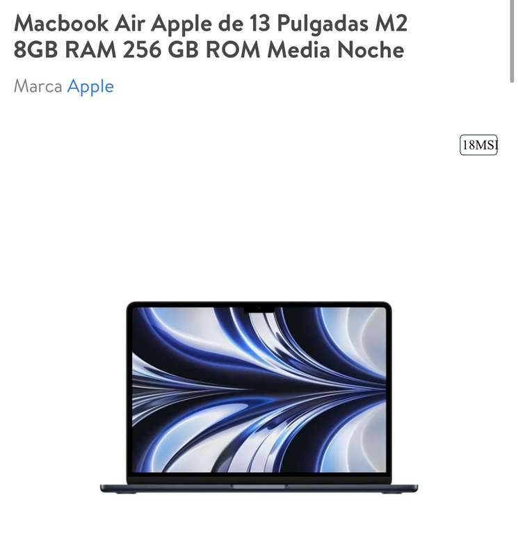 Walmart Ir a la ofertaEncontre esta macbook a un muy buen precio pagando con TDC BBVA a 18 msi y aplicando el cupon BBVAFI20