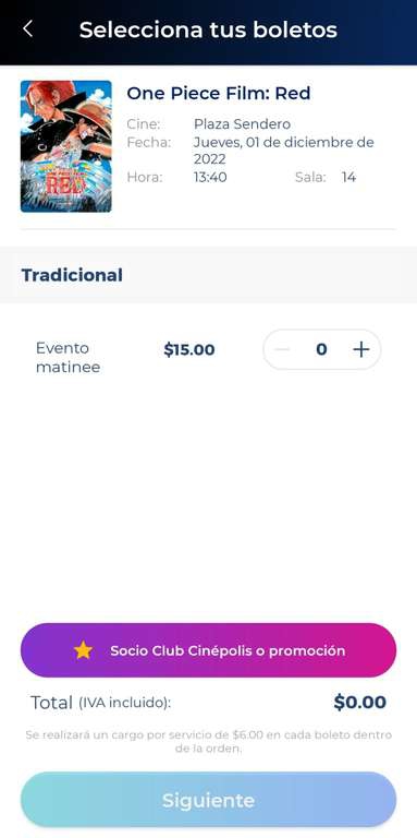 Película de Cinpolis "One Piece Film Red" a precio de matiné