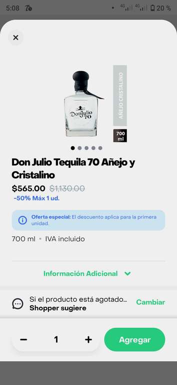 Rappi: Don Julio 70 y Maestro Dobel cristalino