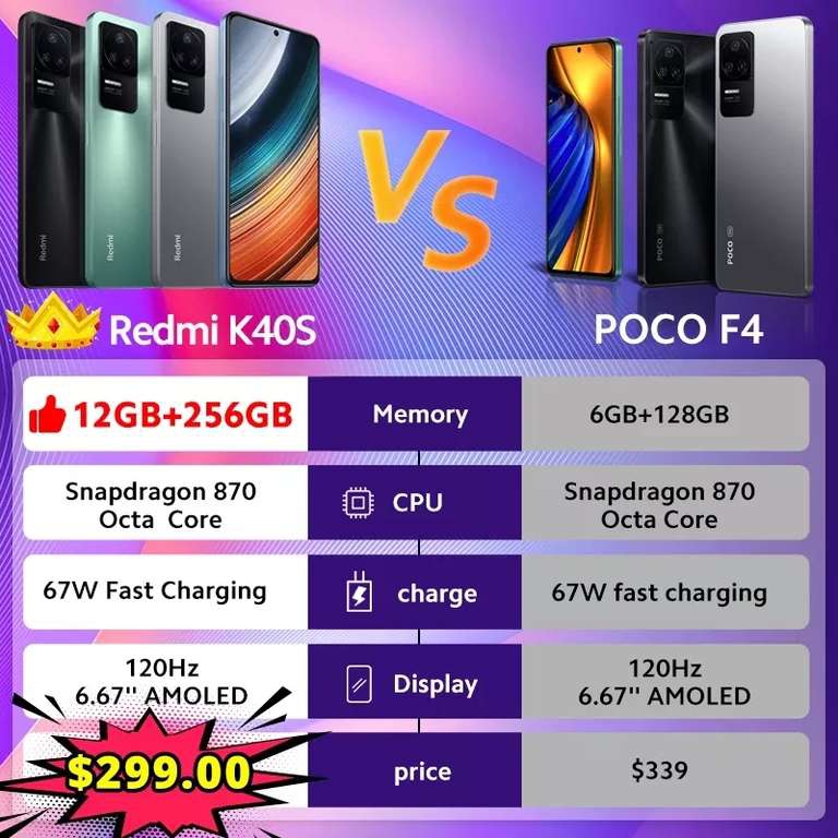 AliExpress: Redmi K40s 12 ram 256 Gb (hermano gemelo poco F4)